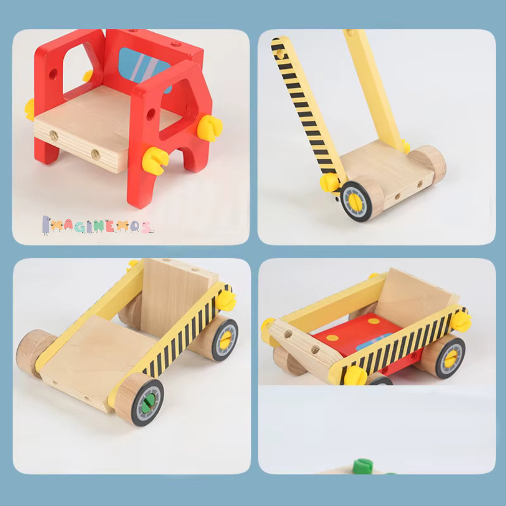 Juguete perfecto para los pequeños constructores de la casa! Este colorido y resistente carrito está equipado con herramientas de madera seguras y de tamaño ideal para que los niños puedan explorar su creatividad y desarrollar habilidades motrices mientras juegan Material: Hecho de madera maciza, pintado con pinturas a base de agua no tóxicas. Seguridad: Las piezas están redondeadas con 360° sin rebabas, lo que hace el juego seguro para las manos pequeñas. Educación y Desarrollo: Fomenta la creatividad, imaginación, coordinación ojo-mano y conciencia espacial. Estimula el pensamiento crítico y el trabajo en equipo. Interacción Familiar: Promueve la interacción entre padres e hijos, ideal para proyectos conjuntos. Aplicación Montessori: Juguete educativo para el desarrollo de habilidades motrices finas, juegos de rol y aprendizaje práctico.