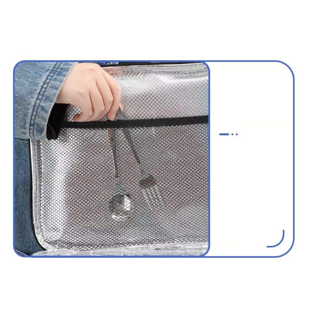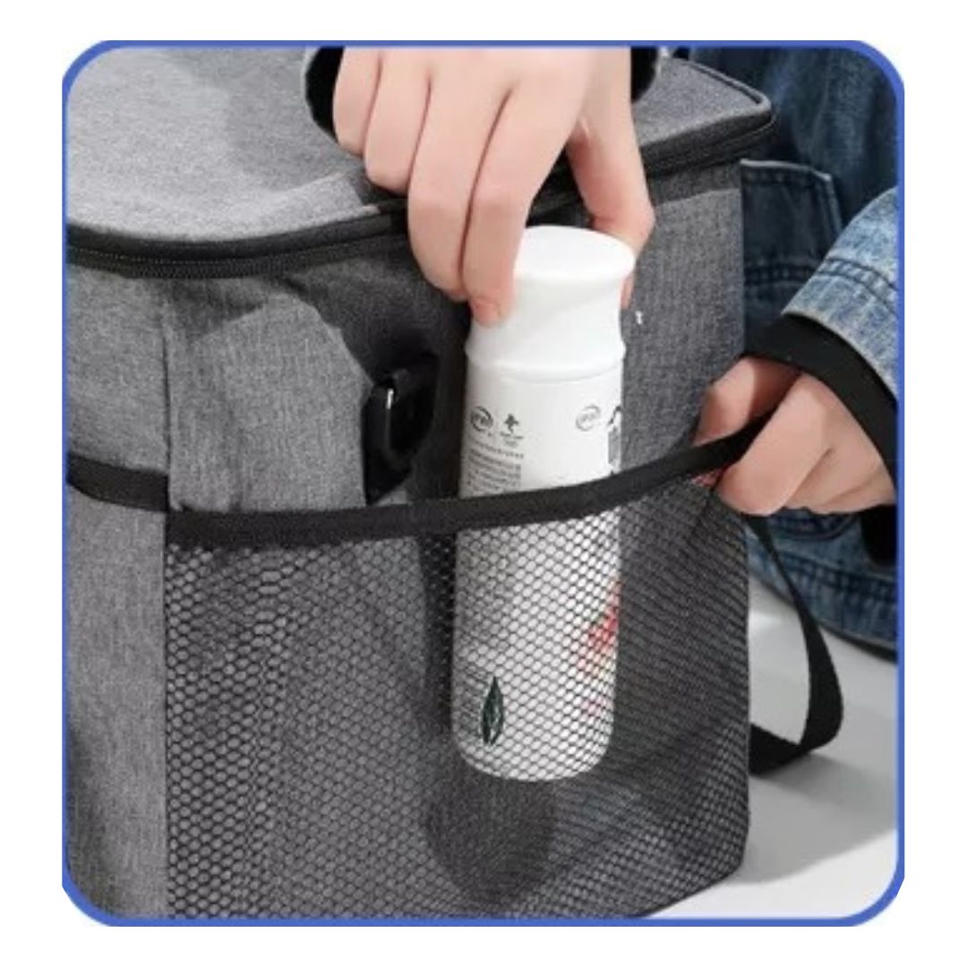 Marca: KORISSIA Material: Poliéster Revestimiento: Aluminio térmico Incluye: Asas de mano y bandolera de hombro Medidas Aprox: 24*16*20.5 cmRECOMENDACIÓN:1. Usa contenedores herméticos apropiados para mantener los alimentos fríos o calientes.2. Evita abrir la lonchera después de colocar los alimentos.3. Usa bolsas o paquetes de gel térmico para garantizar mayor duración de conservación.