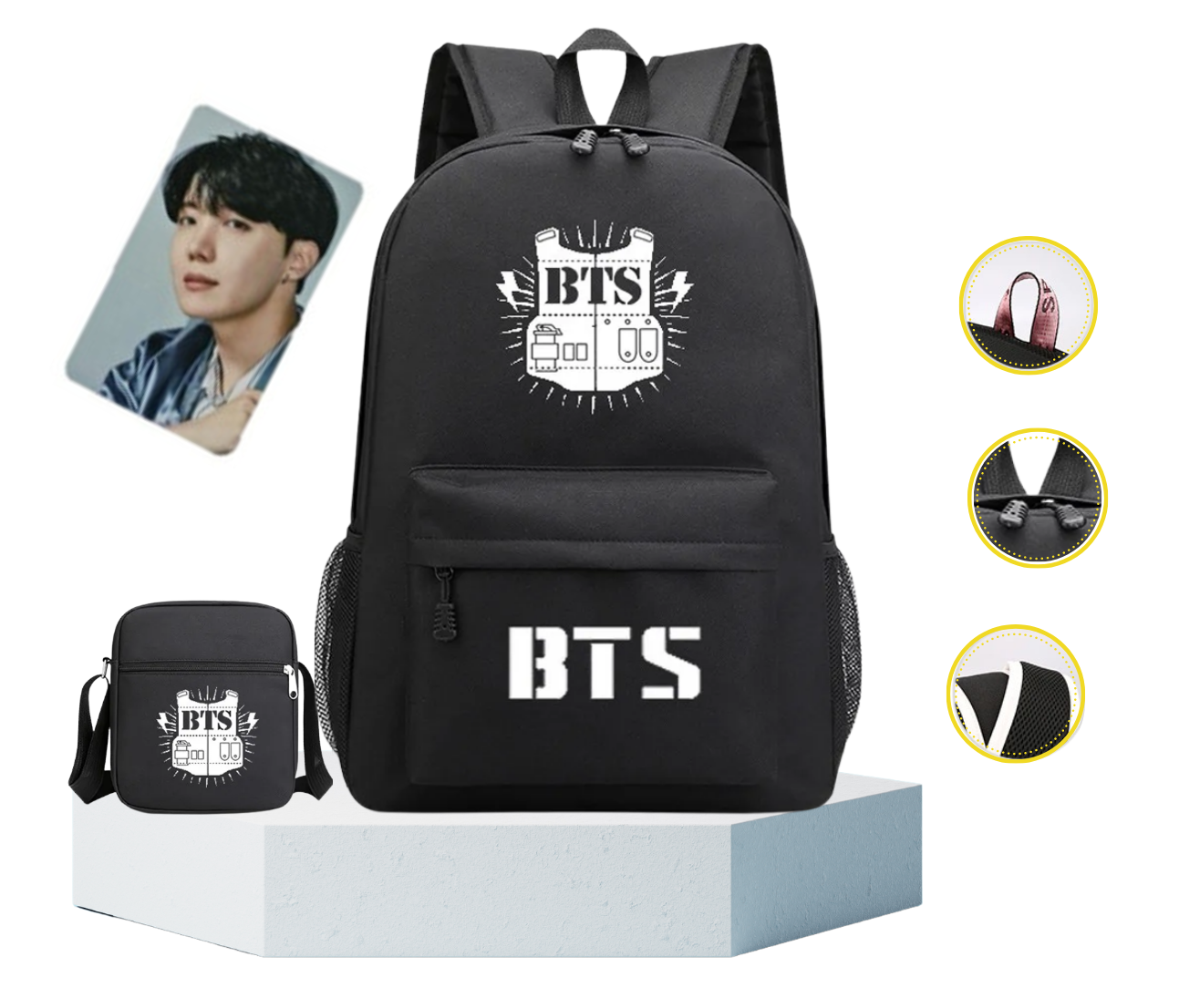 MOCHILA BTS CON MORRAL - NEGRO