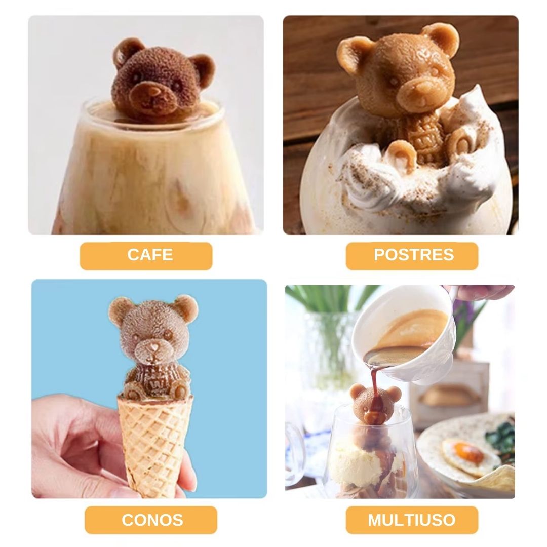 PACK DE MOLDE DE OSITOS PARA HIELO Moldes para hacer tiernos hielos en forma de Ositos! Puedes hacerlos de colores con jugos de fruta, o con gaseosas, para decorar tus preparaciones o bebidas, puedes agregar los materiales que quieras para hacer un oso con tu color o sabor único. Características:✅Uso: Hielo ✅Modelo: Osito ✅Tamaño: 5.5 cm x 5 (cada molde)✅Color de molde: blanco